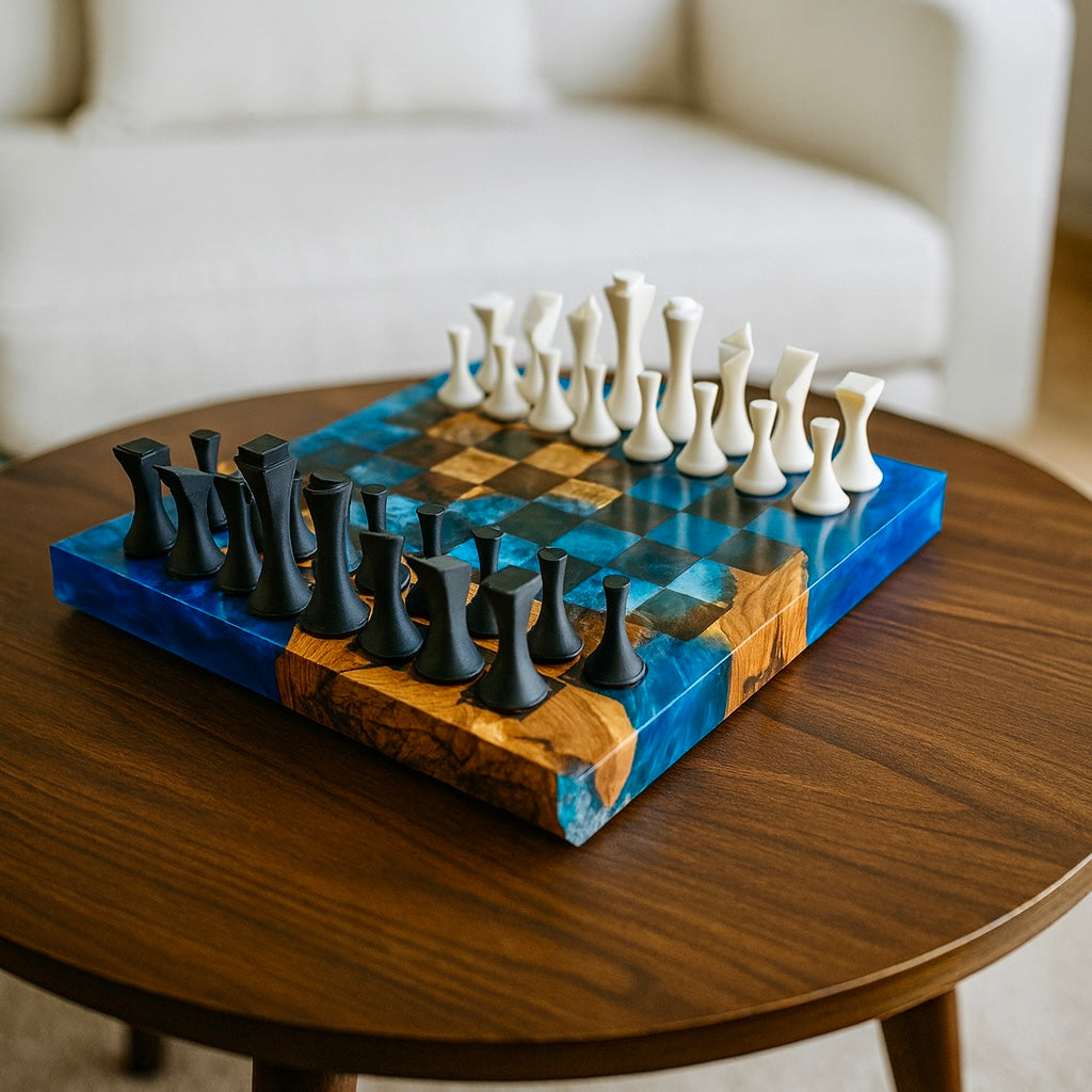 Produciamo in piccole serie e su misura, combinando legno, resina e ferro.